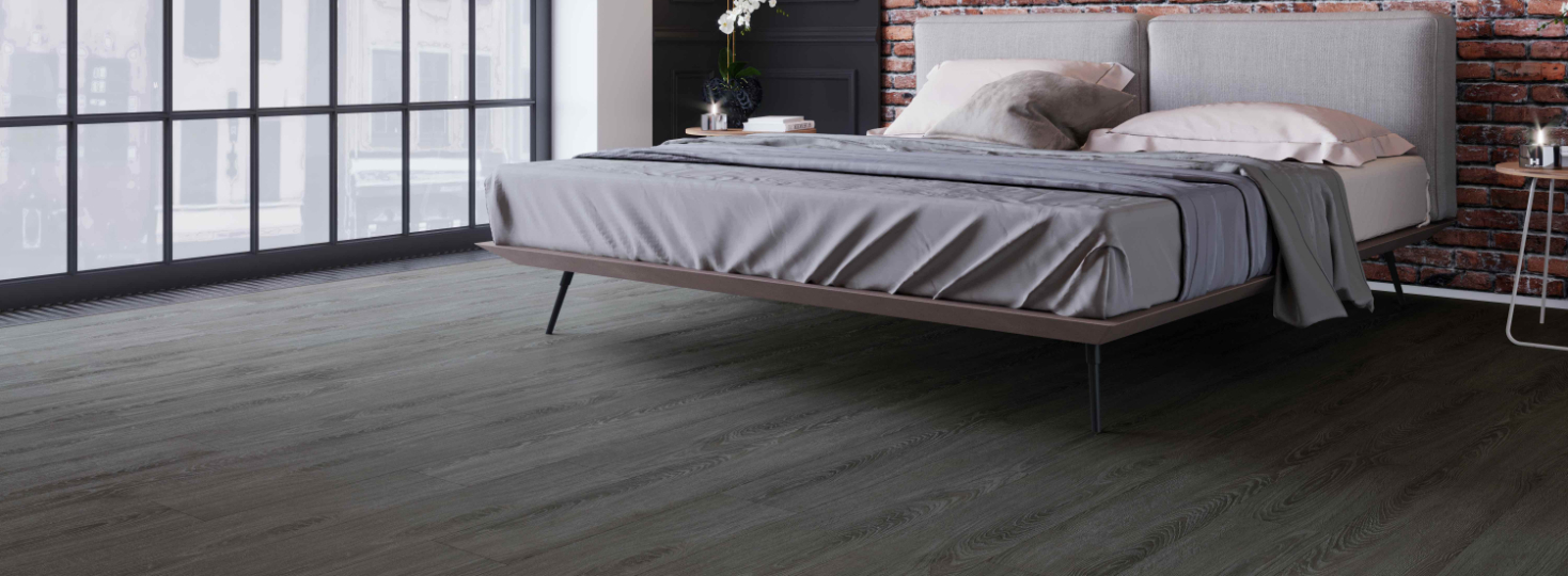 Dark Vinyl Flooring in Bedroom